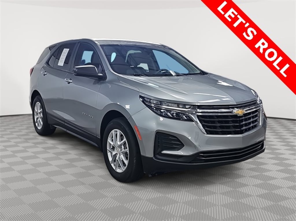 This 2023 Chevrolet Equinox LS in Sterling Gray Metallic features: 17" Aluminum Wheels, 2 Rear USB Charging-Only Ports, 2 USB Ports & Auxiliary Input Jack, 2-Way Power Driver Lumbar Control Seat Adjuster, 3.50 Final Drive Axle Ratio, 4-Wheel Disc Brakes, 6 Speakers, 6-Speaker Audio System Feature, ABS brakes, Air Conditioning, Alloy wheels, AM/FM radio: SiriusXM, Auto High-beam Headlights, Bluetooth® For Phone, Brake assist, Bumpers: body-color, Compass, Deep-Tinted Rear Glass, Delay-off headlights, Deleted 3 Years of Remote Access, Driver 4-Way Manual Seat Adjuster, Driver 8-Way Power Seat Adjuster, Driver door bin, Driver vanity mirror, Dual front impact airbags, Dual front side impact airbags, Electronic Stability Control, Emergency communication system: OnStar and Chevrolet connected services capable, Four wheel independent suspension, Front anti-roll bar, Front Bucket Seats, Front Center Armrest, Front Passenger 4-Way Manual Seat Adjuster, Front reading lights, Fully automatic headlights, Heated door mirrors, Illuminated entry, Lane Change Alert w/Side Blind Zone Alert, Low tire pressure warning, Occupant sensing airbag, Outside temperature display, Overhead airbag, Overhead console, Panic alarm, Passenger door bin, Passenger vanity mirror, Power door mirrors, Power steering, Power windows, Preferred Equipment Group 1FL, Premium audio system: Chevrolet Infotainment 3, Premium Cloth Seat Trim, Radio data system, Radio: Chevrolet Infotainment 3 System w/AM/FM, Rear anti-roll bar, Rear Cross Traffic Alert, Rear reading lights, Rear seat center armrest, Rear window defroster, Rear window wiper, Remote keyless entry, Security system, SiriusXM Radio, Speed control, Speed-sensing steering, Split folding rear seat, Spoiler, Steering wheel mounted audio controls, Tachometer, Telescoping steering wheel, Tilt steering wheel, Traction control, Trip computer, Variably intermittent wipers, Wireless Apple CarPlay/Wireless Android Auto, ONE OWNER UNIT.