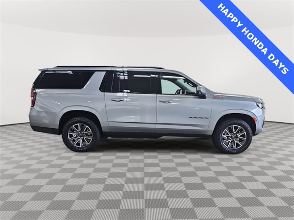 This 2024 Chevrolet Suburban Z71 in Sterling Gray Metallic features: 10-Way Power Driver & Passenger Seat Adjusters, 1st & 2nd Row Color-Keyed Carpeted Floor Mats, 2-Speed Active Electronic AutoTrac Transfer Case, 2nd Row Pwr Release 60/40 Split-Folding Bench Seat, 3.23 Rear Axle Ratio, 3rd Row 60/40 Power-Folding Split-Bench, 3rd row seats: split-bench, 4-Wheel Disc Brakes, 9 Speakers, ABS brakes, Advanced Trailering Package, Air Conditioning, Alloy wheels, AM/FM radio: SiriusXM with 360L, Apple CarPlay/Android Auto, Auto High-beam Headlights, Auto-Dimming Inside Rear-View Mirror, Auto-dimming Rear-View mirror, Automatic temperature control, Black Tubular Assist Steps, Bose 9-Speaker Stereo Audio System Feature, Brake assist, Bright Front & Rear Door Sill Plates, Bumpers: body-color, Color-Keyed Carpeting Floor Covering, Compass, Delay-off headlights, Driver & Front Outboard Passenger Airbags, Driver Alert Package, Driver door bin, Driver vanity mirror, Dual front impact airbags, Dual front side impact airbags, Dual-Pane Power Panoramic Sunroof, Electronic Stability Control, Emergency communication system: OnStar and Chevrolet connected services capable, Enhanced Driver Information Center, Extra Capacity Cooling System, Floor Console w/Storage Area, Four wheel independent suspension, Front anti-roll bar, Front Bucket Seats, Front Center Armrest, Front dual zone A/C, Front High-Approach Angle Fascia, Front reading lights, Fully automatic headlights, Garage door transmitter, Hands-Free Rear Power Programmable Liftgate, HD Surround Vision, Heated 2nd Row Outboard Seats, Heated door mirrors, Heated Driver & Front Passenger Seats, Heated front seats, Heated Steering Wheel, Heavy-Duty Air Filter, Hill Descent Control, Hitch View w/Pan/Zoom Image Adjustment, Illuminated entry, Infotainment Display, Integrated Trailer Brake Controller, Lane Change Alert w/Side Blind Zone Alert, Leather-Appointed Seating, LED Daytime Running Lamps, License Plate Front Mounting Package, Low tire pressure warning, Luxury Package, Max Trailering Package, Memory seat, Memory Settings, Memory Settings For Driver, Navigation System, Occupant sensing airbag, Outside Heated Power-Adjustable Mirrors, Outside temperature display, Overhead airbag, Overhead console, Panic alarm, Passenger door bin, Passenger vanity mirror, Power door mirrors, Power driver seat, Power Liftgate, Power passenger seat, Power Release 2nd Row Bucket Seats, Power steering, Power Tilt & Telescopic Steering Column, Power windows, Preferred Equipment Group 2Z7, Premium audio system: Chevrolet Infotainment 3 Premium, Premium Smooth Ride Suspension, Radio: Chevrolet Infotainment 3 Premium System, Rain sensing wipers, Rear air conditioning, Rear anti-roll bar, Rear Cross Traffic Alert, Rear Pedestrian Alert, Rear reading lights, Rear seat center armrest, Rear window defroster, Rear window wiper, Red Recovery Hooks, Remote keyless entry, Remote Start, Roof rack: xxxxxx, Security system, SiriusXM w/360L, Smart Trailer Integration Indicator, Speed control, Speed-sensing steering, Split folding rear seat, Spoiler, Steering wheel mounted audio controls, Tachometer, Telescoping steering wheel, Tilt steering wheel, Traction control, Trip computer, Universal Home Remote, Variably intermittent wipers, Voltmeter, Wheels: 20" x 9" Machined Aluminum, Wireless Charging, Wrapped Steering Wheel, LOCAL ONE OWNER.