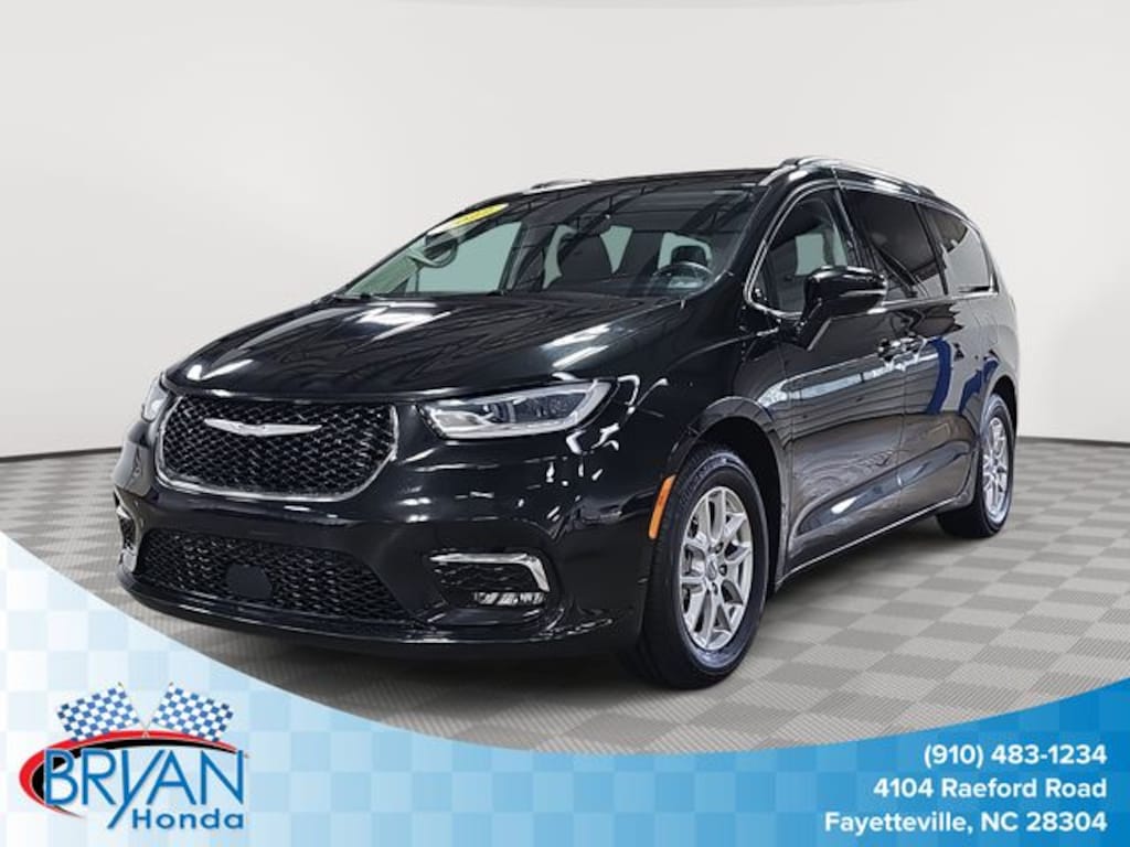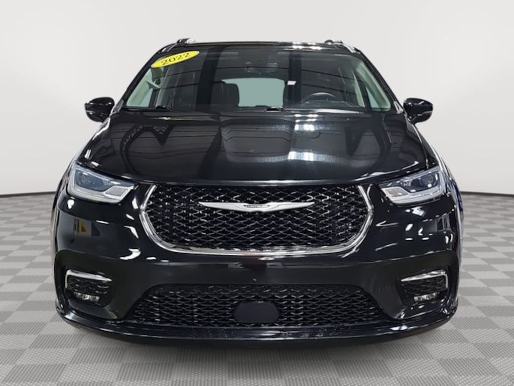 This 2022 Chrysler Pacifica Touring L in Brilliant Black Crystal Pearlcoat features: 10.1" Touchscreen Display, 17" x 7.0" Aluminum Wheels, 3.25 Axle Ratio, 3rd row seats: split-bench, 4-Wheel Disc Brakes, 6 Speakers, ABS brakes, Air Conditioning, Alloy wheels, AM/FM radio: SiriusXM, Apple CarPlay, Apple CarPlay/Android Auto, Auto-dimming Rear-View mirror, Automatic temperature control, Black Seats, Brake assist, Bumpers: body-color, Compass, Delay-off headlights, Disassociated Touchscreen Display, Driver door bin, Driver vanity mirror, Driver's Seat Mounted Armrest, Dual front impact airbags, Dual front side impact airbags, Electronic Stability Control, For More Info, Call 800-643-2112, Four wheel independent suspension, Front anti-roll bar, Front Bucket Seats, Front dual zone A/C, Front fog lights, Front reading lights, Fully automatic headlights, Garage door transmitter, Google Android Auto, GPS Antenna Input, Heated door mirrors, Heated front seats, Heated steering wheel, Illuminated entry, Integrated Active Noise Cancellation, Integrated Center Stack Radio, Knee airbag, Low tire pressure warning, Memory seat, Occupant sensing airbag, Outside temperature display, Overhead airbag, Overhead console, Panic alarm, ParkSense Rear Park Assist Unavailable, ParkSense Rear Park Assist w/Stop, ParkView Rear Back-Up Camera, Passenger door bin, Passenger seat mounted armrest, Passenger vanity mirror, Perforated Leather Trim Bucket Seats, Power door mirrors, Power driver seat, Power Liftgate, Power steering, Power windows, Quick Order Package 27L, Radio data system, Radio: Uconnect 5 w/10.1" Display, Rain sensing wipers, Rear air conditioning, Rear reading lights, Rear window defroster, Rear window wiper, Reclining 3rd row seat, Remote keyless entry, Roof rack, Safety Sphere Unavailable, Security system, SiriusXM Radio Service, SiriusXM Satellite Radio, Speed control, Split folding rear seat, Spoiler, Steering wheel mounted audio controls, Tachometer, Telescoping steering wheel, Tilt steering wheel, Touring Suspension, Traction control, Trip computer, Turn signal indicator mirrors, USB Host Flip, Variably intermittent wipers, Voltmeter, LOCAL AREA OWNER.