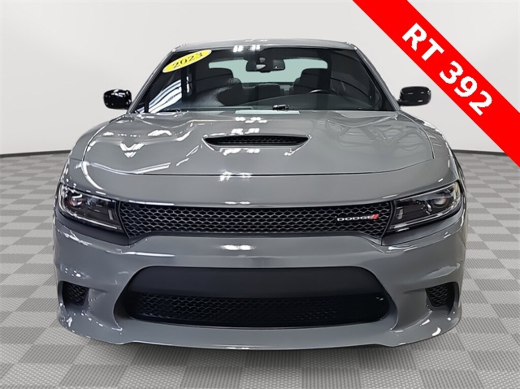 This 2023 Dodge Charger R/T in Destroyer Gray Clearcoat features: Black Cloth, Black Cloth, 1-Yr SiriusXM Guardian Trial, 19 harman/kardon GreenEdge Speakers, 2-Piece Shark Fin Antenna, 4-Wheel Disc Brakes, 4G LTE Wi-Fi Hot Spot, 6 Speakers, 8.4" Touchscreen Display, ABS brakes, Air Conditioning, Alloy wheels, AM/FM radio: SiriusXM, Anti-whiplash front head restraints, Apple CarPlay, Apple CarPlay/Android Auto, Auto-dimming Rear-View mirror, Automatic temperature control, Brake assist, Bumpers: body-color, Cloth Performance Seats, Cloth Performance Seats w/Heat, Cold Weather Package, Compass, Delay-off headlights, Driver door bin, Driver vanity mirror, Dual front impact airbags, Dual front side impact airbags, Electronic Stability Control, Emergency communication system: SiriusXM Guardian, For Details, Visit DriveUconnect.com, Four wheel independent suspension, Front anti-roll bar, Front Bucket Seats, Front Center Armrest, Front dual zone A/C, Front reading lights, Fully automatic headlights, Garage door transmitter: HomeLink, Google Android Auto, GPS Antenna Input, harman/kardon Audio Group, harman/kardon GreenEdge Amp, HD Radio, Heated door mirrors, Heated Front Seats, Heated Steering Wheel, Illuminated entry, Integrated Center Stack Radio, Integrated Voice Command w/Bluetooth, Knee airbag, Leather Shift Knob, Low tire pressure warning, Manufacturer's Statement of Origin, Media Hub (2 USB, AUX), Occupant sensing airbag, Outside temperature display, Overhead airbag, Overhead console, Panic alarm, ParkView Rear Back-Up Camera, Passenger door bin, Passenger vanity mirror, Power 2-Way Driver Lumbar Adjust, Power 8-Way Driver Seat, Power door mirrors, Power driver seat, Power steering, Power windows, Quick Order Package 26N, Radio: Uconnect 4C w/8.4" Display, Rear anti-roll bar, Rear Armrest w/Cupholder Seat, Rear reading lights, Rear seat center armrest, Rear window defroster, Remote keyless entry, Speed control, Speed-Sensitive Wipers, Split folding rear seat, Spoiler, Sport steering wheel, Steering wheel mounted audio controls, Surround Sound, Tachometer, Telescoping steering wheel, Tilt steering wheel, Traction control, Trip computer, USB Host Flip, Variably intermittent wipers, Wheels: 20" x 8" Machined w/Granite Pocket.