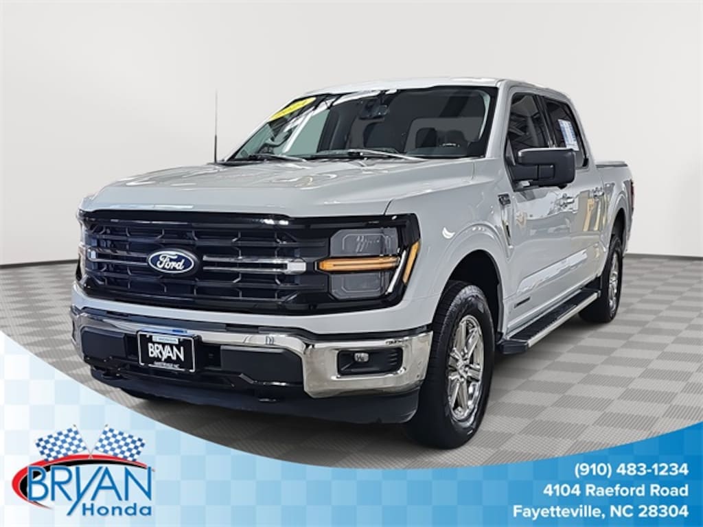 This 2024 Ford F-150 XLT in Avalanche Gray features: 3.5L PowerBoost Full-Hybrid V6, 4WD, 3.5L PowerBoost Full-Hybrid V6, 4WD, 4-Wheel Disc Brakes, 6 Speakers, ABS brakes, Air Conditioning, Alloy wheels, AM/FM radio: SiriusXM with 360L, Auto High-beam Headlights, Auto-dimming Rear-View mirror, Automatic temperature control, Brake assist, Bumpers: chrome, Chrome wheels, Cloth 40/20/40 Front Seat, Cloth 40/Console/40 Front Seats, Compass, Console Worksurface, Delay-off headlights, Driver door bin, Driver vanity mirror, Dual front impact airbags, Dual front side impact airbags, Electronic Stability Control, Emergency communication system: SYNC 4 911 Assist, Equipment Group 301A Standard, Front anti-roll bar, Front Center Armrest w/Storage, Front dual zone A/C, Front fog lights, Front License Plate Bracket, Front reading lights, Front wheel independent suspension, Fully automatic headlights, Heated door mirrors, Illuminated entry, Low tire pressure warning, Mobile Office Package, Navigation system: Connected Navigation, Occupant sensing airbag, Outside temperature display, Overhead airbag, Overhead console, Panic alarm, Partitioned Lockable Rear Storage, Passenger door bin, Passenger vanity mirror, Power door mirrors, Power driver seat, Power steering, Power windows, Radio data system, Radio: AM/FM SiriusXM w/360L, Rear reading lights, Rear step bumper, Rear window defroster, Remote keyless entry, Security system, Speed control, Split folding rear seat, Steering wheel mounted audio controls, SYNC 4 w/Enhanced Voice Recognition, Tachometer, Telescoping steering wheel, Tilt steering wheel, Traction control, Trip computer, Variably intermittent wipers, Voltmeter, Wheels: 18" Chrome-Like PVD, ONE OWNER VEHICLE.