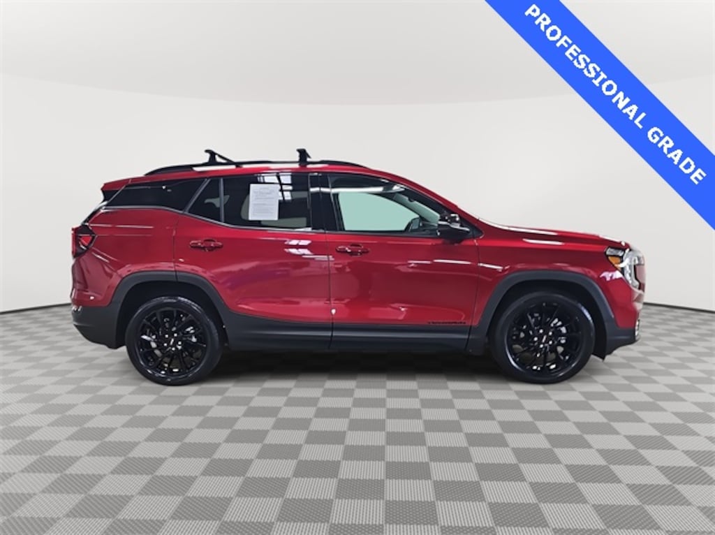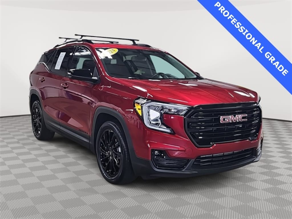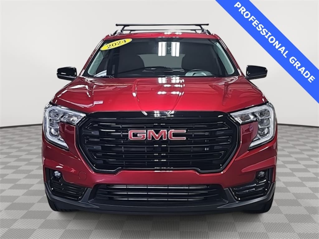 This 2024 GMC Terrain SLT in Volcanic Red Tintcoat features: 2 USB Data Ports, 2 USB Data Ports w/SD Card Reader, 3.47 Final Drive Axle Ratio, 4-Wheel Disc Brakes, 6 Speakers, 6-Speaker Audio System Feature, 6-Way Power Front Passenger Seat, 8-Way Power Driver Seat Adjuster, ABS brakes, Air Conditioning, Alloy wheels, AM/FM radio: SiriusXM, Auto High-beam Headlights, Auto-dimming Rear-View mirror, Automatic temperature control, Black GMC Center Caps w/Red GMC Lettering, Black Mirror Caps, Bluetooth® For Phone, Brake assist, Bumpers: body-color, Compass, Darkened Front Grille, Delay-off headlights, Driver & Front Passenger Heated Seats, Driver door bin, Driver vanity mirror, Dual front impact airbags, Dual front side impact airbags, Electronic Stability Control, Elevation Edition, Emergency communication system: OnStar and GMC connected services capable, Four wheel independent suspension, Front anti-roll bar, Front Bucket Seats, Front Center Armrest, Front dual zone A/C, Front fog lights, Front Passenger 2-Way Power Lumbar, Front reading lights, Fully automatic headlights, Garage door transmitter, Heated door mirrors, Heated front seats, Heated steering wheel, Illuminated entry, Low tire pressure warning, Memory seat, Occupant sensing airbag, Outside temperature display, Overhead airbag, Overhead console, Panic alarm, Passenger door bin, Passenger vanity mirror, Perforated Leather-Appointed Seat Trim, Power door mirrors, Power Driver Lumbar Control, Power driver seat, Power Liftgate, Power passenger seat, Power steering, Power windows, Preferred Equipment Group 4SA, Radio data system, Radio: GMC Infotainment Audio System w/8" Display, Rear anti-roll bar, Rear seat center armrest, Rear window defroster, Rear window wiper, Remote keyless entry, Roof rack: rails only, Roof-Mounted Luggage Rack Side Rails, Security system, SiriusXM, Skyscape Power Sunroof w/Power Sunscreen, Speed control, Speed-sensing steering, Split folding rear seat, Spoiler, Steering wheel mounted audio controls, Tachometer, Telescoping steering wheel, Tilt steering wheel, Traction control, Trip computer, Turn signal indicator mirrors, Variably intermittent wipers, Wheels: 18" x 7" Silver Painted Aluminum, Wheels: 19" Gloss Black Aluminum, Wireless Apple CarPlay/Wireless Android Auto.