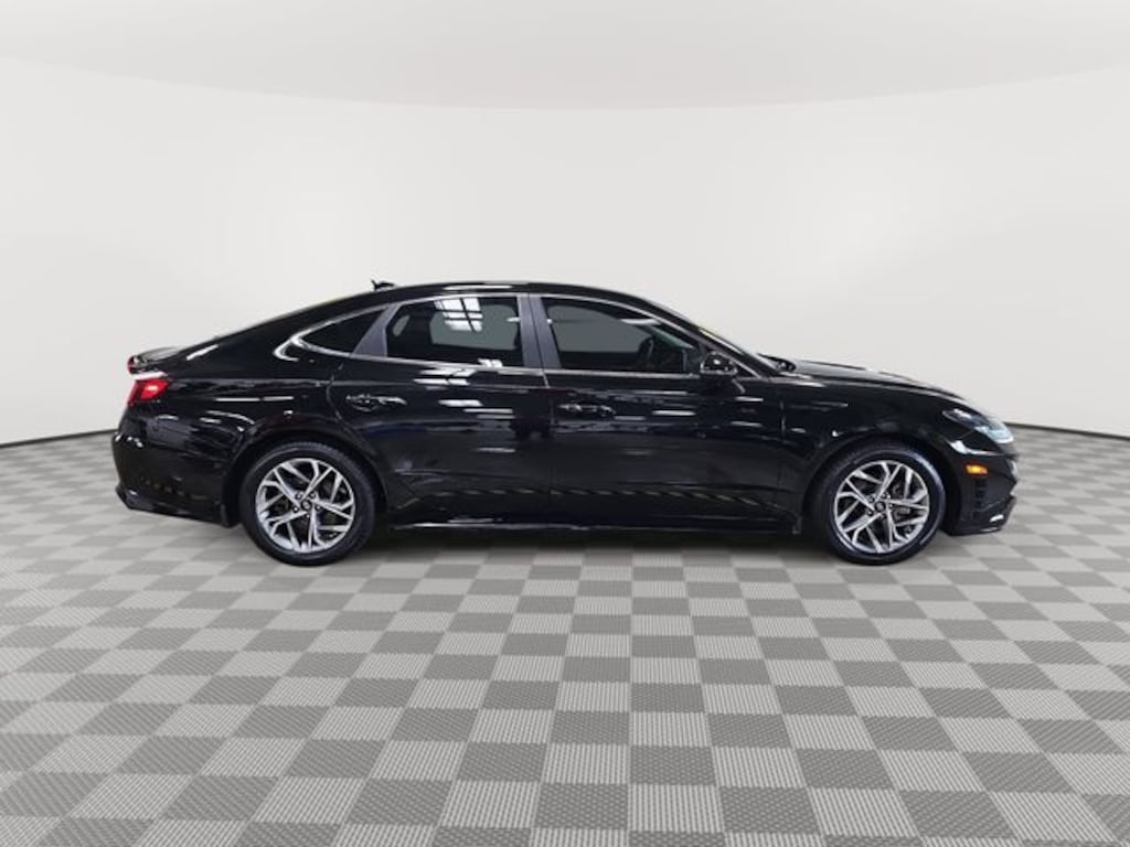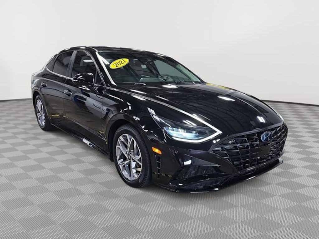 This 2021 Hyundai Sonata SEL in Phantom Black features: Dark Gray w/Premium Cloth Seating Surfaces, Dark Gray w/Premium Cloth Seating Surfaces, 4-Wheel Disc Brakes, 6 Speakers, ABS brakes, Air Conditioning, Alloy wheels, AM/FM radio: SiriusXM, Apple CarPlay & Android Auto, Auto High-beam Headlights, Automatic temperature control, Brake assist, Bumpers: body-color, Cargo Hook, Cargo Net, Cargo Package, Carpeted Floor Mats, Delay-off headlights, Driver door bin, Driver vanity mirror, Dual front impact airbags, Dual front side impact airbags, Electronic Stability Control, Emergency communication system: Blue Link Connected Car Service (3-year complimentary subscription), Exterior Parking Camera Rear, Four wheel independent suspension, Front anti-roll bar, Front Bucket Seats, Front Center Armrest, Front dual zone A/C, Front reading lights, Fully automatic headlights, Heated door mirrors, Heated Front Bucket Seats, Heated front seats, Illuminated entry, Knee airbag, Low tire pressure warning, Mud Guards, Occupant sensing airbag, Option Group 01, Outside temperature display, Overhead airbag, Overhead console, Panic alarm, Passenger door bin, Passenger vanity mirror, Power door mirrors, Power driver seat, Power steering, Power windows, Premium Cloth Seating Surfaces, Radio data system, Radio: AM/FM/MP3/HD/SiriusXM Display Audio, Rear anti-roll bar, Rear Bumper Applique, Rear seat center armrest, Rear side impact airbag, Rear window defroster, Remote keyless entry, Reversible Cargo Tray, Security system, Speed control, Speed-sensing steering, Speed-Sensitive Wipers, Split folding rear seat, Steering wheel mounted audio controls, Tachometer, Telescoping steering wheel, Tilt steering wheel, Traction control, Trip computer, Turn signal indicator mirrors, Variably intermittent wipers, Wheel Locks, Wheels: 17 x 7.0J Aluminum Alloy.