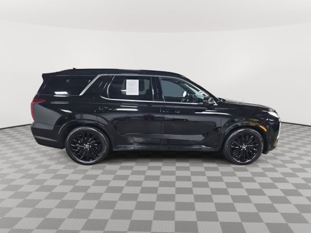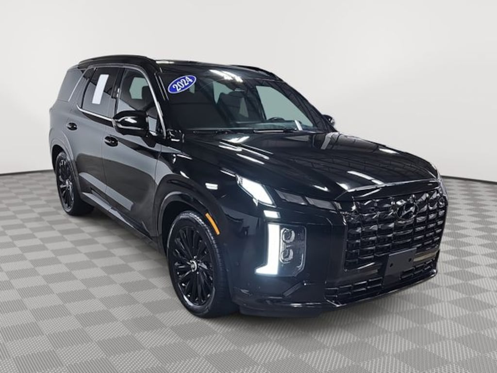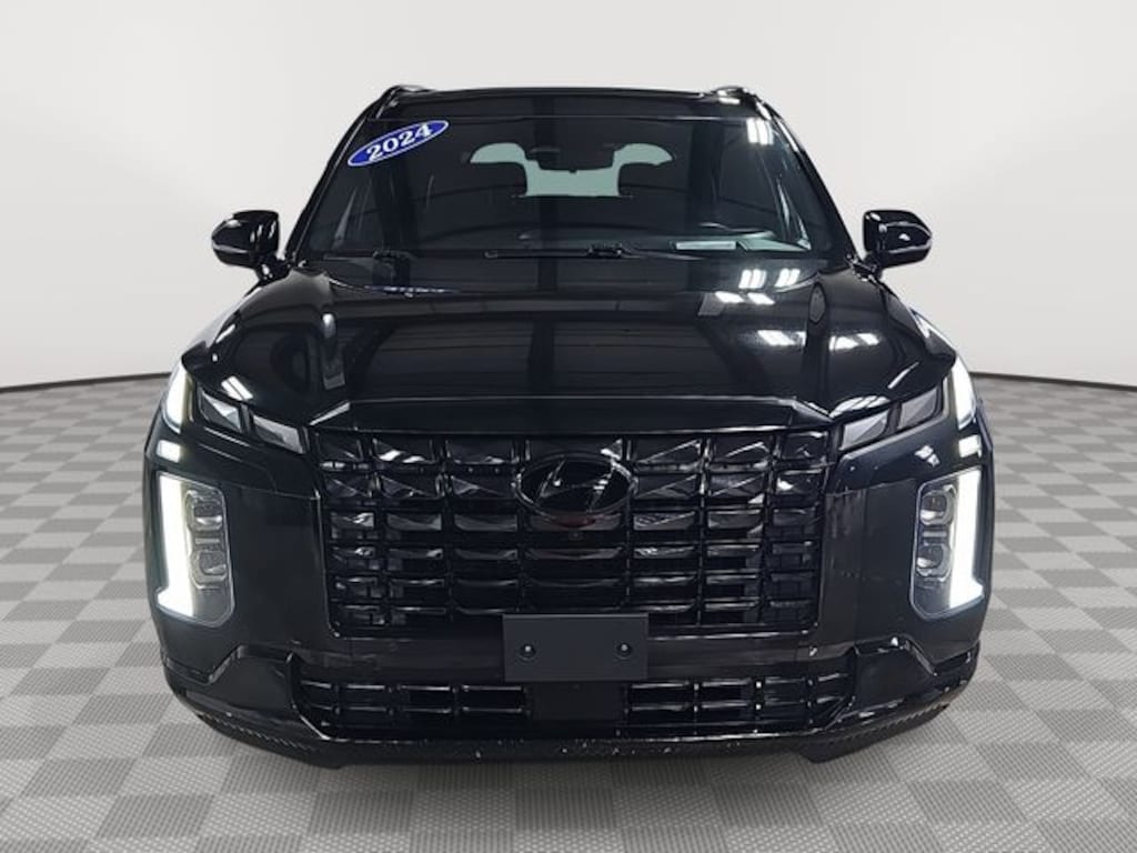 This 2024 Hyundai Palisade Calligraphy Night Edition in Abyss Black Pearl features: 12 Speakers, 3.648 Axle Ratio, 3rd row seats: split-bench, 4-Wheel Disc Brakes, ABS brakes, Air Conditioning, Alloy wheels, AM/FM radio: SiriusXM, Apple CarPlay & Android Auto, Auto High-beam Headlights, Auto-dimming door mirrors, Auto-dimming Rear-View mirror, Auto-leveling suspension, Automatic temperature control, Brake assist, Bumpers: body-color, Compass, Delay-off headlights, Driver door bin, Driver vanity mirror, Dual front impact airbags, Dual front side impact airbags, Electronic Stability Control, Emergency communication system, Exterior Parking Camera Rear, Four wheel independent suspension, Front anti-roll bar, Front Bucket Seats, Front Center Armrest, Front dual zone A/C, Front reading lights, Fully automatic headlights, Garage door transmitter: HomeLink, harman/kardon® Speakers, Heads-Up Display, Heated & Ventilated Front Bucket Seats, Heated door mirrors, Heated front seats, Heated rear seats, Heated steering wheel, Illuminated entry, Knee airbag, Low tire pressure warning, Memory seat, Microfiber Suede Seat Trim, Navigation System, Occupant sensing airbag, Option Group 01, Outside temperature display, Overhead airbag, Overhead console, Panic alarm, Passenger door bin, Passenger vanity mirror, Power door mirrors, Power driver seat, Power Liftgate, Power moonroof, Power passenger seat, Power steering, Power windows, Radio data system, Radio: AM/FM/MP3 Premium Audio System, Rain sensing wipers, Rear air conditioning, Rear anti-roll bar, Rear audio controls, Rear reading lights, Rear side impact airbag, Rear window defroster, Rear window wiper, Reclining 3rd row seat, Remote keyless entry, Roof rack, Security system, Speed control, Speed-sensing steering, Split folding rear seat, Spoiler, Steering wheel mounted audio controls, Tachometer, Telescoping steering wheel, Tilt steering wheel, Traction control, Trip computer, Turn signal indicator mirrors, Variably intermittent wipers, Ventilated front seats, Ventilated rear seats, Wheels: 20" x 7.5J Black Liquid Paint Alloy.
