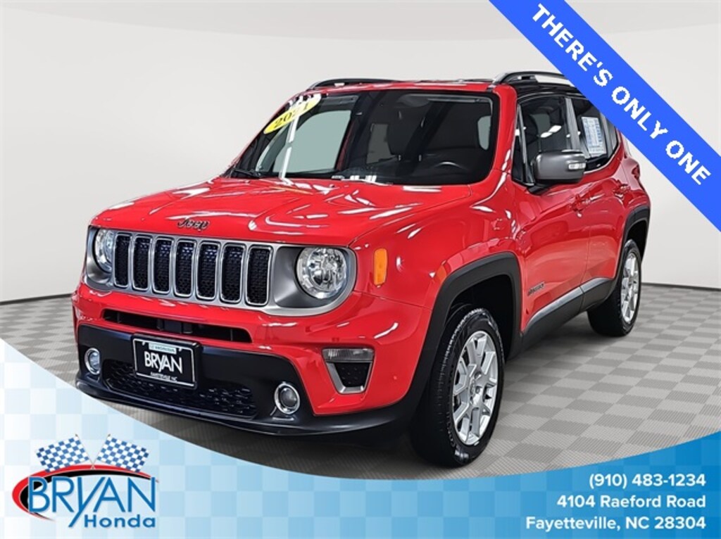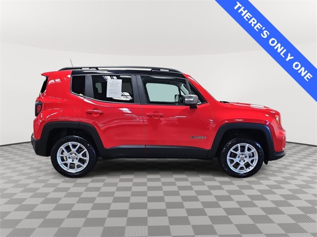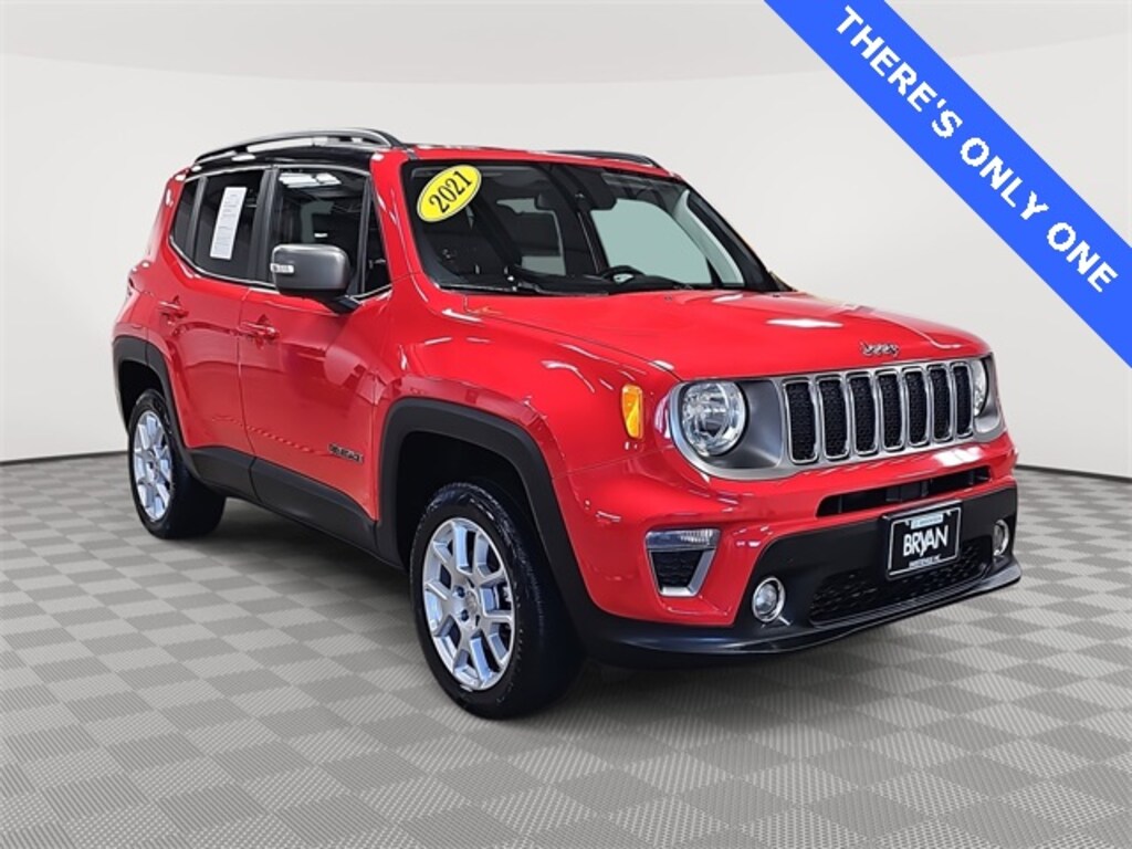 This 2021 Jeep Renegade Limited in Colorado Red Clearcoat features: 17" x 7.0" Aluminum Wheels, 177HP Power Rating, 3.734 Final Drive Ratio, 4-Wheel Disc Brakes, 6 Speakers, ABS brakes, Active Grille Shutters, Air Conditioning, Alloy wheels, AM/FM radio: SiriusXM, Anti-whiplash front head restraints, Apple CarPlay/Android Auto, Auto-dimming Rear-View mirror, Automatic temperature control, Brake assist, Compass, Delay-off headlights, Driver door bin, Driver vanity mirror, Dual front impact airbags, Dual front side impact airbags, Electronic Stability Control, Emergency communication system: SiriusXM Guardian, Four wheel independent suspension, Front anti-roll bar, Front Bucket Seats, Front Center Armrest, Front dual zone A/C, Front fog lights, Front reading lights, Fully automatic headlights, Heated door mirrors, Heated front seats, Heated steering wheel, Illuminated entry, Knee airbag, Leather Shift Knob, Leather steering wheel, Leather Trimmed Bucket Seats, Low tire pressure warning, Navigation System, Normal Duty Suspension, Occupant sensing airbag, Outside temperature display, Overhead airbag, Panic alarm, ParkView Rear Back-Up Camera, Passenger door bin, Passenger vanity mirror, Power door mirrors, Power driver seat, Power steering, Power windows, Quick Order Package 22D, Radio data system, Radio: Uconnect 4C Nav w/8.4" Display, Rain sensing wipers, Rear anti-roll bar, Rear seat center armrest, Rear window defroster, Rear window wiper, Remote keyless entry, Roof rack: rails only, Security system, Speed control, Split folding rear seat, Spoiler, Steering wheel mounted audio controls, Stop-Start Multiple VSM System, Tachometer, Telescoping steering wheel, Tilt steering wheel, Traction control, Trip computer, Turn signal indicator mirrors, Variably intermittent wipers, Voltmeter, LOCAL ONE OWNER.