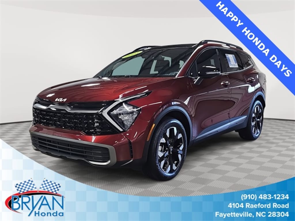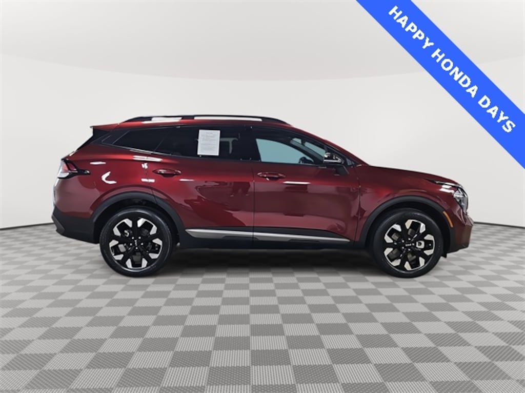 This 2023 Kia Sportage X-Line in Dawning Red features: AWD, AWD, 4-Wheel Disc Brakes, 6 Speakers, ABS brakes, Air Conditioning, Alloy wheels, AM/FM radio: SiriusXM, Apple CarPlay & Android Auto, Auto High-beam Headlights, Automatic temperature control, Axle Ratio: 3.648, Brake assist, Bumpers: body-color, Carpet Floor Mats X-Line, Compass, Delay-off headlights, Driver door bin, Driver vanity mirror, Dual front impact airbags, Dual front side impact airbags, Electronic Stability Control, Emergency communication system, Four wheel independent suspension, Front anti-roll bar, Front Bucket Seats, Front Center Armrest, Front dual zone A/C, Fully automatic headlights, harman/kardon® Speakers, Heated door mirrors, Heated Front Bucket Seats, Heated front seats, Illuminated entry, Leather Shift Knob, Leather steering wheel, LED Interior Lighting, Low tire pressure warning, Navigation System, Occupant sensing airbag, Outside temperature display, Overhead airbag, Overhead console, Panic alarm, Panoramic Sunroof, Passenger door bin, Passenger vanity mirror, Power door mirrors, Power driver seat, Power steering, Power windows, Premium Leatherette Seat Trim, Radio: AM/FM/HD Audio System, Rain sensing wipers, Rear anti-roll bar, Rear seat center armrest, Rear window defroster, Rear window wiper, Remote keyless entry, Security system, Smart Power Liftgate, Speed control, Speed-sensing steering, Split folding rear seat, Spoiler, Steering wheel mounted audio controls, Tachometer, Telescoping steering wheel, Tilt steering wheel, Traction control, Trip computer, Turn signal indicator mirrors, Variably intermittent wipers, Wheels: 19" Gloss Black Alloy, X-Line Premium Package, ONE OWNER UNIT.