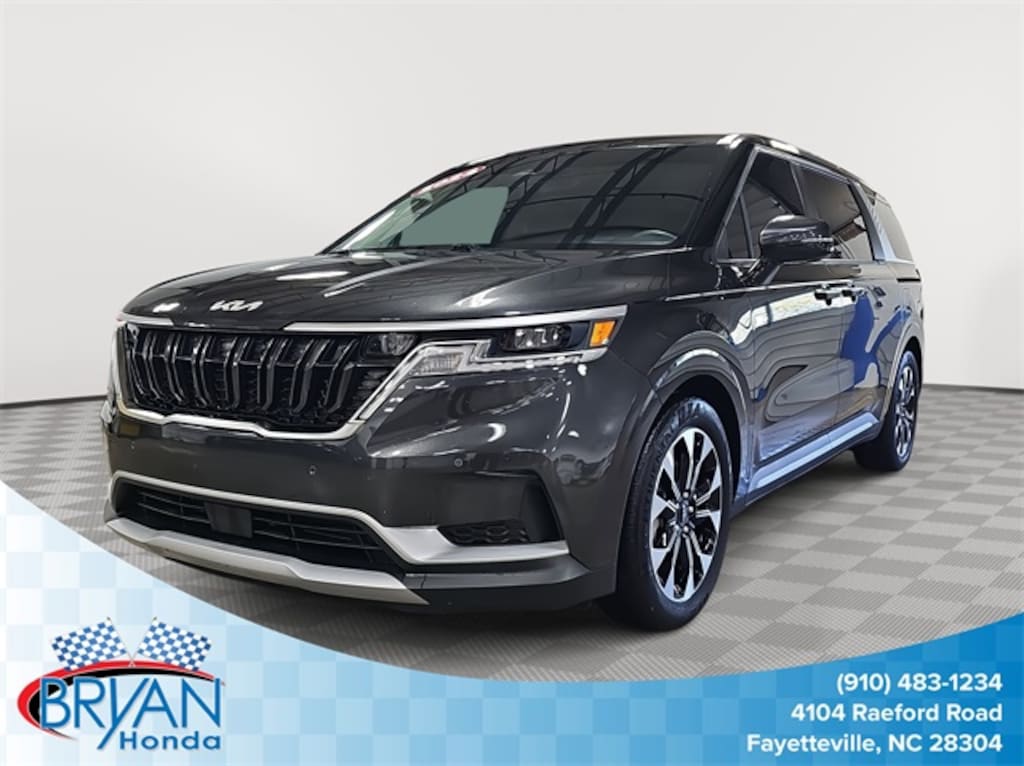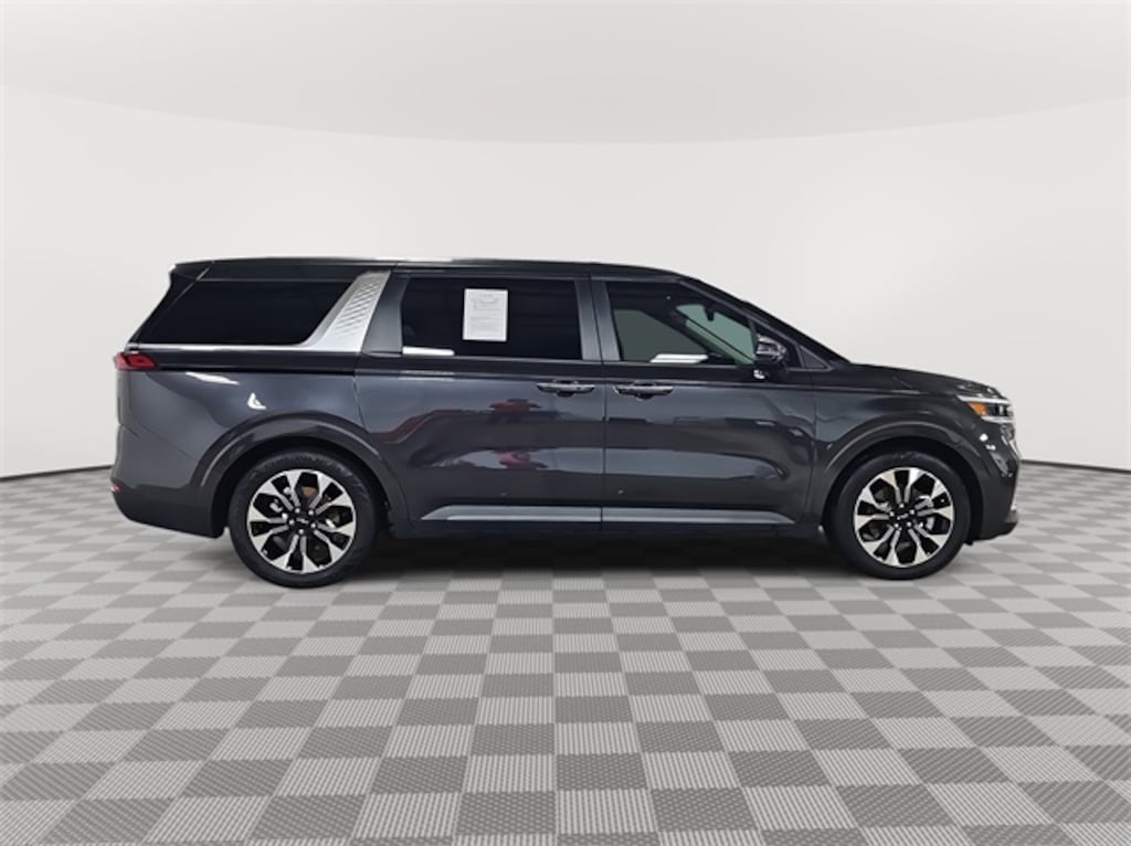 This 2024 Kia Carnival EX in Panthera Metal features: 10 Speakers, 3.51 Axle Ratio, 3rd row seats: split-bench, 4-Wheel Disc Brakes, ABS brakes, Air Conditioning, Alloy wheels, AM/FM radio: SiriusXM, Apple CarPlay & Android Auto, Artificial Leather Seat Trim, Auto High-beam Headlights, Automatic temperature control, Brake assist, Bumpers: body-color, Carpeted Floor Mats (8-Passenger), Compass, Delay-off headlights, Driver door bin, Driver vanity mirror, Dual front impact airbags, Dual front side impact airbags, Electronic Stability Control, Emergency communication system, Four wheel independent suspension, Front anti-roll bar, Front Bucket Seats, Front Center Armrest, Front dual zone A/C, Front reading lights, Fully automatic headlights, Heated door mirrors, Heated Front Bucket Seats, Heated front seats, Illuminated entry, Knee airbag, Leather Shift Knob, Leather steering wheel, Low tire pressure warning, Navigation System, Occupant sensing airbag, Outside temperature display, Overhead airbag, Overhead console, Panic alarm, Passenger door bin, Passenger vanity mirror, Power door mirrors, Power driver seat, Power steering, Power windows, Radio: AM/FM/HD Audio System, Rear air conditioning, Rear anti-roll bar, Rear reading lights, Rear window defroster, Rear window wiper, Reclining 3rd row seat, Remote keyless entry, Security system, Speed control, Speed-sensing steering, Split folding rear seat, Spoiler, Steering wheel mounted audio controls, Tachometer, Telescoping steering wheel, Tilt steering wheel, Traction control, Trip computer, Turn signal indicator mirrors, Variably intermittent wipers, Wheels: 7.5J x 19" Machine-Finished Alloy, ONE OWNER UNIT.