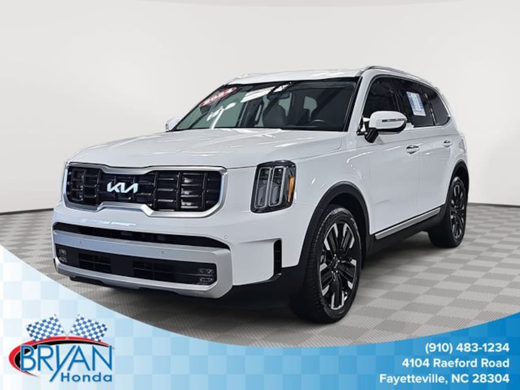 This 2024 Kia Telluride SX in Glacial White Pearl features: 10 Speakers, 3.510 Axle Ratio, 3rd row seats: split-bench, 4-Wheel Disc Brakes, ABS brakes, Air Conditioning, Alloy wheels, AM/FM radio: SiriusXM, Apple CarPlay & Android Auto, Auto High-beam Headlights, Auto-dimming Rear-View mirror, Automatic temperature control, Brake assist, Bumpers: body-color, Carpet Floor Mats, Compass, Delay-off headlights, Driver door bin, Driver vanity mirror, Dual front impact airbags, Dual front side impact airbags, Electronic Stability Control, Emergency communication system: 911 Connect, Exterior Parking Camera Rear, Four wheel independent suspension, Front anti-roll bar, Front Bucket Seats, Front Center Armrest, Front dual zone A/C, Front fog lights, Front reading lights, Fully automatic headlights, Garage door transmitter: HomeLink, harman/kardon® Speakers, Heated & Ventilated Front Bucket Seats, Heated door mirrors, Heated front seats, Hybrid Cargo Net, Illuminated entry, Knee airbag, Leather Seat Trim, Leather Shift Knob, Leather steering wheel, Low tire pressure warning, Memory seat, Navigation System, Occupant sensing airbag, Outside temperature display, Overhead airbag, Overhead console, Panic alarm, Passenger door bin, Passenger vanity mirror, Power door mirrors, Power driver seat, Power Liftgate, Power moonroof, Power passenger seat, Power steering, Power windows, Radio data system, Radio: AM/FM Harman Kardon Premium Audio System, Rear air conditioning, Rear anti-roll bar, Rear audio controls, Rear Bumper Applique, Rear reading lights, Rear side impact airbag, Rear window defroster, Rear window wiper, Reclining 3rd row seat, Remote keyless entry, Roof rack: rails only, Security system, Self Leveling Rear Suspension, Smart Key w/ Push Button and Remote Start, Speed control, Speed-sensing steering, Split folding rear seat, Spoiler, Steering wheel mounted audio controls, Tachometer, Telescoping steering wheel, Tilt steering wheel, Towing Hitch Standard, Towing Package, Traction control, Trip computer, Turn signal indicator mirrors, Variably intermittent wipers, Ventilated front seats, Wheels: 20" x 7.5" Black Finish.