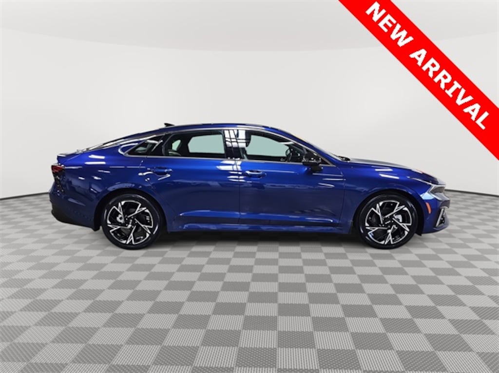 This 2025 Kia K5 GT-Line in Yacht Blue features: 4-Wheel Disc Brakes, 6 Speakers, ABS brakes, Active Sound Design, Air Conditioning, Alloy wheels, AM/FM radio: SiriusXM, Auto High-beam Headlights, Automatic temperature control, Bose Premium Audio, Brake assist, Bumpers: body-color, Carpeted Floor Mats, Delay-off headlights, Driver door bin, Driver vanity mirror, Dual front impact airbags, Dual front side impact airbags, Electronic Stability Control, Emergency communication system: Kia Connect (includes 1 year free trial), Four wheel independent suspension, Front anti-roll bar, Front Bucket Seats, Front Center Armrest, Front dual zone A/C, Front fog lights, Front reading lights, Fully automatic headlights, GT-Line Premium Package, Heated door mirrors, Heated Front Bucket Seats, Heated front seats, Heated steering wheel, Illuminated entry, Knee airbag, Leather Shift Knob, Leather steering wheel, LED Interior Lighting, Low tire pressure warning, Navigation System, Occupant sensing airbag, Outside temperature display, Overhead airbag, Overhead console, Panic alarm, Panoramic Sunroof, Passenger door bin, Passenger vanity mirror, Power door mirrors, Power driver seat, Power steering, Power windows, Radio data system, Radio: AM/FM Audio System, Rear anti-roll bar, Rear seat center armrest, Rear side impact airbag, Rear window defroster, Remote keyless entry, Security system, Speed control, Speed-sensing steering, Split folding rear seat, Sport steering wheel, Steering wheel mounted audio controls, Tachometer, Telescoping steering wheel, Tilt steering wheel, Traction control, Trip computer, Turn signal indicator mirrors, Variably intermittent wipers, Wheels: 18" x 7.5J Gloss Black Machined Finish Alloy.
