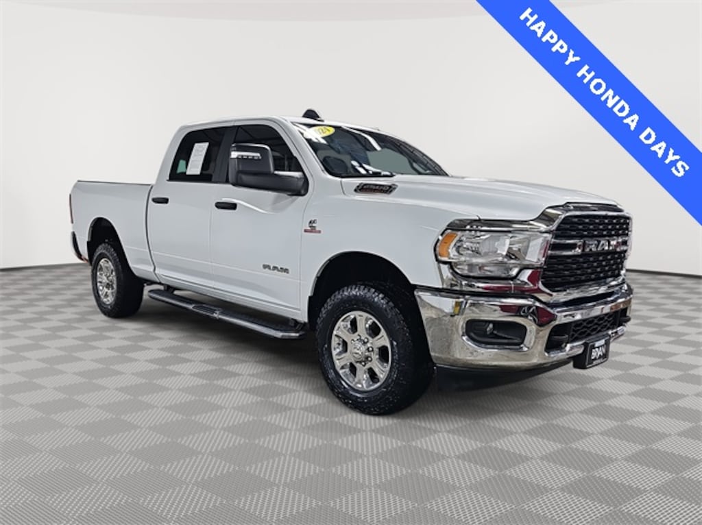 This 2024 Ram 2500 Big Horn in Bright White Clearcoat features: 2 Way Rear Headrest Seat, 2nd Row In Floor Storage Bins, 3.73 Axle Ratio, 4 Way Front Headrests, 4-Wheel Disc Brakes, 40/20/40 Split Bench Seat, 4G LTE Wi-Fi Hot Spot, 6 Speakers, 8.4" Touchscreen Display, ABS brakes, Active Noise Control System, Air Conditioning, Apple CarPlay, Auto Power-Folding Mirrors, Big Horn IP Badge, Black Exterior Mirrors, Bluetooth Handsfree Phone & Audio, Brake assist, Bumpers: chrome, Center Hub, Center Stack Storage Drawer, Chrome Flat Cab-Length Side Steps, Cloth 40/20/40 Bench Seat, Compass, Connectivity - US/Canada, Delay-off headlights, Driver door bin, Dual front impact airbags, Dual front side impact airbags, Dual Glove Boxes, Electronic Stability Control, Electronically Controlled Throttle, Emergency communication system: SiriusXM Guardian, Exterior Mirrors Courtesy Lamps, Exterior Mirrors w/Heating Element, Exterior Mirrors w/Supplemental Signals, Foam Bottle Insert (Door Trim Panel), Footwell Courtesy Lamp, For Details, Visit DriveUconnect.com, For More Info, Call 800-643-2112, Forward & Reverse Utility Lights, Front anti-roll bar, Front Armrest w/Cupholders, Front Center Armrest w/Storage, Front Center Seat Cushion Storage, Front Fog Lamps, Front License Plate Bracket, Front reading lights, Front Seat Back Map Pockets, Fully automatic headlights, Global Telematics Box Module (TBM), Glove Box Lamp, Google Android Auto, GPS Antenna Input, Heated door mirrors, Illuminated entry, Integrated Center Stack Radio, Integrated Voice Command w/Bluetooth, Leather Wrapped Steering Wheel, Level 1 Equipment Group, Locking Lower Glove Box, Low tire pressure warning, Manual Adjust 4-Way Driver Seat, Manual Adjust 4-Way Front Passenger Seat, Manufacturer's Statement of Origin, Mirror Running Lights, Occupant sensing airbag, Outside temperature display, Overhead airbag, Overhead console, Panic alarm, ParkView Rear Back-Up Camera, Passenger door bin, Passenger vanity mirror, Power 2-Way Driver Lumbar Adjust, Power Adjust 8-Way Driver Seat, Power Adjust Mirrors, Power Adjustable Convex Aux Mirrors, Power door mirrors, Power Heated Fold Telescope Mirrors, Power steering, Power Telescoping Mirrors, Power windows, Premium Cloth 40/20/40 Bench Seat (DISC), Quick Order Package 2HZ Big Horn, Radio data system, Radio: Uconnect 3 w/5" Display, Radio: Uconnect 5 W w/8.4" Display, Rear 60/40 Folding Seat, Rear anti-roll bar, Rear Dome w/On/Off Switch Lamp, Rear Folding Seat, Rear seat center armrest, Rear step bumper, Remote keyless entry, Remote USB Port - Charge Only, Selectable Tire Fill Alert, SiriusXM Radio Service, SiriusXM Satellite Radio, Speed control, Steering Wheel Mounted Audio Controls, Storage Tray, Tachometer, Tilt steering wheel, Tip Start, Tow Hooks, Traction control, Trip computer, Turn signal indicator mirrors, Variably intermittent wipers, Voltmeter, Wheels: 18" x 8.0" Polished Aluminum, Wheels: 18" x 8.0" Steel Chrome Clad, LOCAL ONE OWNER.