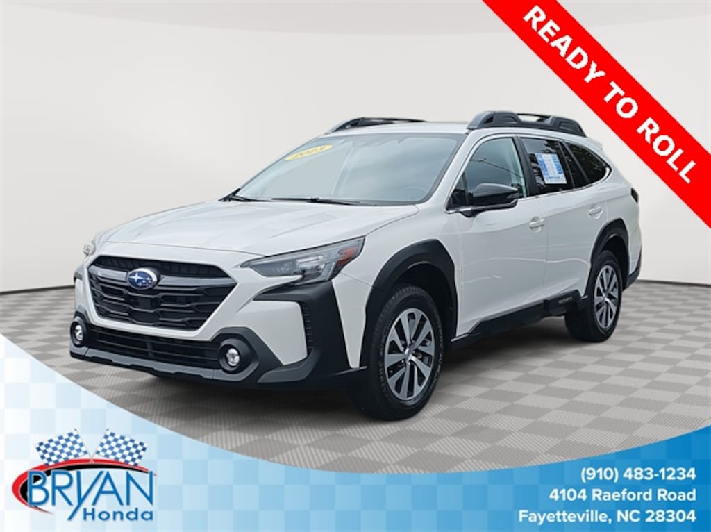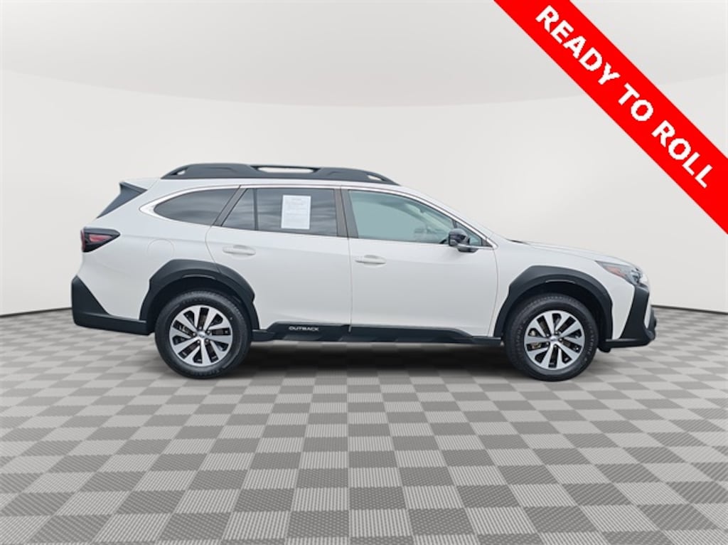 This 2023 Subaru Outback Premium in Crystal White Pearl features: 3.90 Axle Ratio, 4-Wheel Disc Brakes, 6 Speakers, ABS brakes, Air Conditioning, Alloy wheels, AM/FM radio: SiriusXM, Auto High-beam Headlights, Automatic temperature control, Blind Spot Detection (BSD), Brake assist, BSD w/RCTA & Keyless Access & Push Button Start, Bumpers: body-color, Cloth Upholstery, Driver door bin, Driver vanity mirror, Dual front impact airbags, Dual front side impact airbags, Electronic Stability Control, Emergency communication system: STARLINK Safety Plus (3-year free trial), Exterior Parking Camera Rear, Four wheel independent suspension, Front anti-roll bar, Front Bucket Seats, Front Center Armrest w/Storage, Front dual zone A/C, Front fog lights, Front reading lights, Fully automatic headlights, Hands-Free Power Rear Gate, Heated door mirrors, Heated Front Bucket Seats, Heated front seats, Illuminated entry, Keyless Access w/Push Button Start, Knee airbag, Leather Shift Knob, Leather steering wheel, Low tire pressure warning, Occupant sensing airbag, Outside temperature display, Overhead airbag, Overhead console, Panic alarm, Passenger door bin, Passenger vanity mirror, Power door mirrors, Power driver seat, Power steering, Power windows, Radio: Subaru STARLINK 11.6" Multimedia Plus Sys, Rear anti-roll bar, Rear Cross Traffic Alert (RCTA), Rear seat center armrest, Rear window defroster, Rear window wiper, Remote keyless entry, Roof rack, Security system, Speed control, Speed-sensing steering, Split folding rear seat, Spoiler, Steering wheel mounted audio controls, Steering Wheel Paddle Shift Control Switches, Tachometer, Telescoping steering wheel, Tilt steering wheel, Traction control, Trip computer, Turn signal indicator mirrors, Variably intermittent wipers, Wheels: 17" x 7J Black Aluminum Alloy, ONE OWNER UNIT.