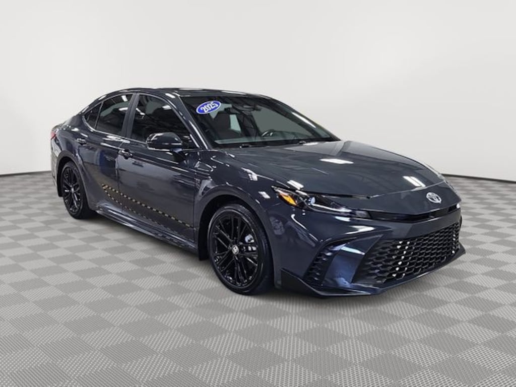 This 2025 Toyota Camry SE in Underground features: 2.5L 4-Cylinder 16V DOHC, Black Premium Synthetic, 2.5L 4-Cylinder 16V DOHC, Black Premium Synthetic, 4-Wheel Disc Brakes, 6 Speakers, ABS brakes, Air Conditioning, Alloy wheels, AM/FM radio: SiriusXM, Apple CarPlay/Android Auto, Auto High-beam Headlights, Automatic temperature control, Brake assist, Bumpers: body-color, Delay-off headlights, Driver door bin, Driver vanity mirror, Dual front impact airbags, Dual front side impact airbags, Electronic Stability Control, Emergency communication system: Safety Connect (up to 10-year trial subscription), Exterior Parking Camera Rear, Four wheel independent suspension, Front anti-roll bar, Front Bucket Seats, Front Center Armrest, Front dual zone A/C, Front reading lights, Fully automatic headlights, Heated door mirrors, Illuminated entry, Knee airbag, Leather Shift Knob, Leather steering wheel, Low tire pressure warning, Occupant sensing airbag, Outside temperature display, Overhead airbag, Overhead console, Panic alarm, Passenger door bin, Passenger vanity mirror, Power door mirrors, Power driver seat, Power steering, Power windows, Radio data system, Radio: Toyota Audio Multimedia w/12.3" Touchscreen, Radio: Toyota Audio Multimedia w/8" Touchscreen, Rear anti-roll bar, Rear reading lights, Rear seat center armrest, Rear side impact airbag, Rear window defroster, Remote keyless entry, Security system, SofTex & Fabric Seat Trim, Speed control, Speed-sensing steering, Split folding rear seat, Spoiler, Steering wheel mounted audio controls, Telescoping steering wheel, Tilt steering wheel, Traction control, Trip computer, Turn signal indicator mirrors, Variably intermittent wipers, Wheels: 18" Black-Finished Alloy, LOCAL ONE OWNER.